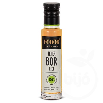 A Pödör Fehérborecet tipikus, intenzív ízét a minőségi fehérbor, a speciális tárolási technológia és a sok éves tapasztalat biztosítja. 100% természetes, fahordóban érlelt ecet. Jól harmonizál leveles salátákra önmagában, de nagyszerű párosítás olajokkal, mint a Pödör sárgabarackmag-, fenyőmag-, pisztáciaolaj stb. Kiváló levesek, főzelékek, szószok ízesítésére, valamint húsok és halak pácolásához. (kendermag-, vagy olívaolajjal kombinálva) A fantáziánk szabhat csak határt, hogy melyik ételbe gondoljuk tovább ezt a prémium minőségű bio fehérborecetet!Tartósítószer és adalékanyag mentes, nem tartalmaz mesterséges színezéket, aromát és ízfokozót!