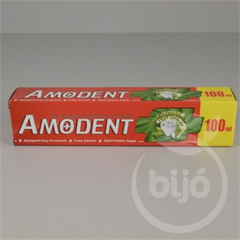 AMODENT+ FOGKRÉM HERBAL 100 ML: a fogkrém, egy nemzetközileg széles körben elterjedt fogszuvasodást gátló technológiával készül. Tisztít, segít megőrizni fehérséget és óvja egészségüket, erősíti a fogzománcot, így hatékony védelmet nyújt a fogszuvasodás ellen. A fogkrém kamilla, zsálya, kakukkfű és mirha kivonatot, valamint teafa olajat tartalmaz, melyek regeneráló és antibakteriális hatásukról ismertek.