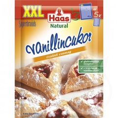 HAAS GLUTÉNMENTES VANILINCUKOR XXL. A megújult Haas vaníliás cukor gluténmentes és dupla vanillintartalommal ízesítik süteményeit, desszertjeit. Összetevoi: cukor, aroma (vanillinkristály). XXL kiszerelésben.