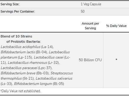 A probiotikus baktériumok fontos szerepet játszanak az egészséges emésztésben, valamint segítik a bélfal bevonatának folytonosságát fenntartani, és támogatják a megfelelő bélmotilitást és részt vesznek a méregtelenítési folyamatban. * A Probiotic-10 ™ olyan baktériumtörzseket tartalmaz, amelyek klinikai vizsgálatok szerint támogatják az immunrendszer egészséges működését. *10 fajta baktériumtörzs